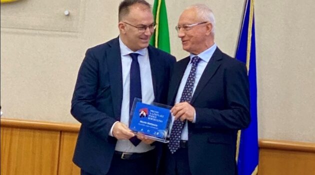 Sezione economia e solidarietà Nicola Mattoscio, a destra, mentre riceve il premio Paolo Borsellino dalle mani di Ottavio De Martinis Nicola Mattoscio,…