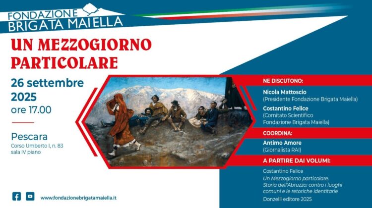 Il libro Un Mezzogiorno particolare di Costantino Felice rivoluziona le immagini stereotipate dell’Abruzzo, mostrandone i tratti semplicistici e mistificatori: dall’insulsa formuletta del forte e gentile alle ben più sofisticate stilizzazioni artistiche del pastore dannunziano e del cafone siloniano. Il tutto verrà approfondito il 26 settembre (ore 17) , nella sede della Fondazione Pescarabruzzo, in corso Umberto I, Pescara. Ne discuteranno l’autore e Nicola Mattoscio (presidente della Fondazione Brigata Maiella), coordinati dal giornalista Antimo Amore. Con una qualità di scrittura rapida e avvolgente – una sorta di pamphlet – l’autore da una parte procede allo smontaggio di questo prevalente Abruzzo in idea, costruito cioè su proiezioni mitopoietiche di provenienza soprattutto antropologica e letteraria, i cui esiti sono spesso di nascondimento, se non proprio di stravolgimento e falsificazione, rispetto ai concreti meccanismi del divenire economico e sociale (oltre che politico e culturale) che hanno portato la regione ad essere quella che oggi appare ai nostri occhi.