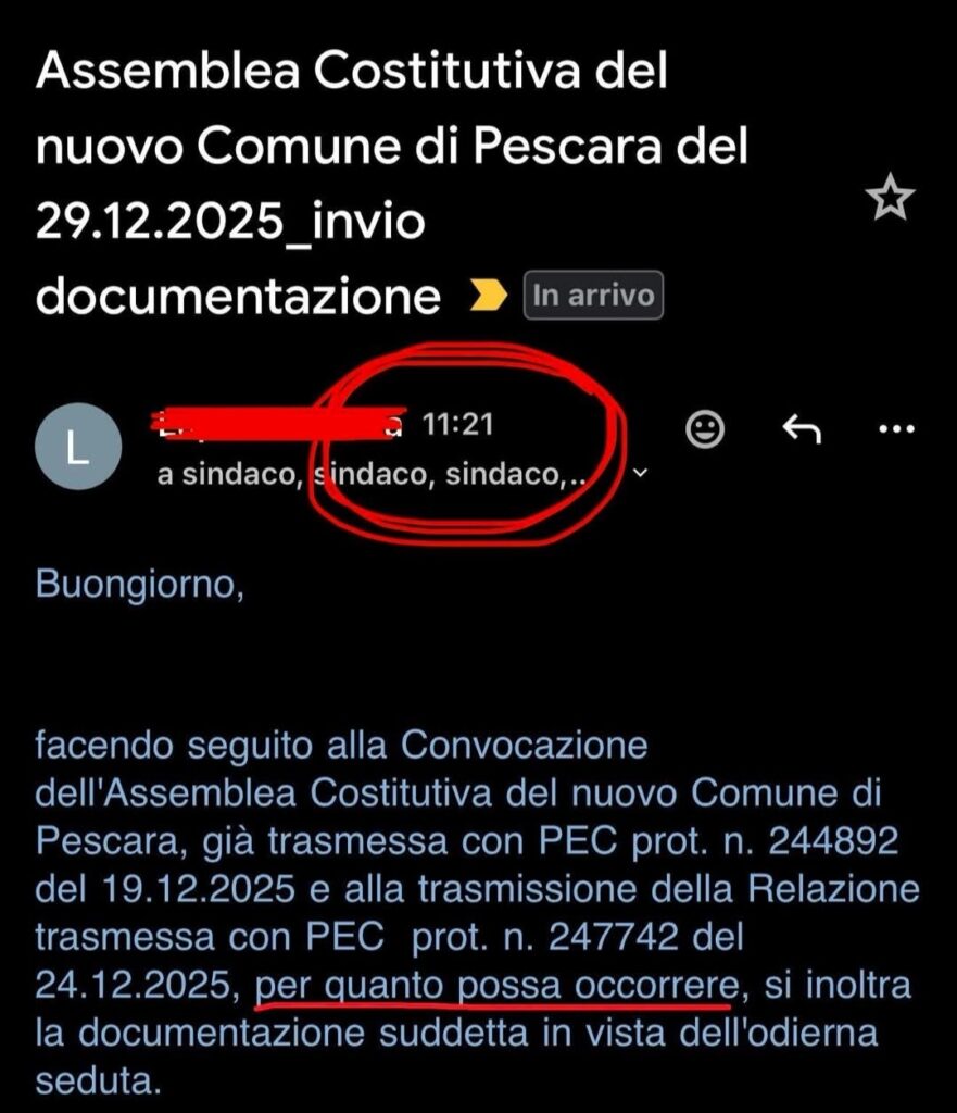 …oggi 29 dicembre 2025, alle ore 17, era convocata l’Assemblea Costitutiva della Nuova Pescara…